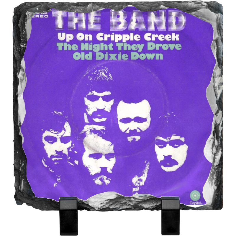 Classic images and artwork from The Band printed in full color on slate. Created from finely-grained sedimentary rock, the slate canvas measures 7.5" x 7.5" and is 3/8" thick. The ultra-flat coated image area provides for beautiful and consistent photo transfers while the individually fractured edges helps to seamlessly blend the printed image into each piece. Includes plastic stand. This item is print-on-demand. Please allow for an additional 2-3 days for your order to ship.